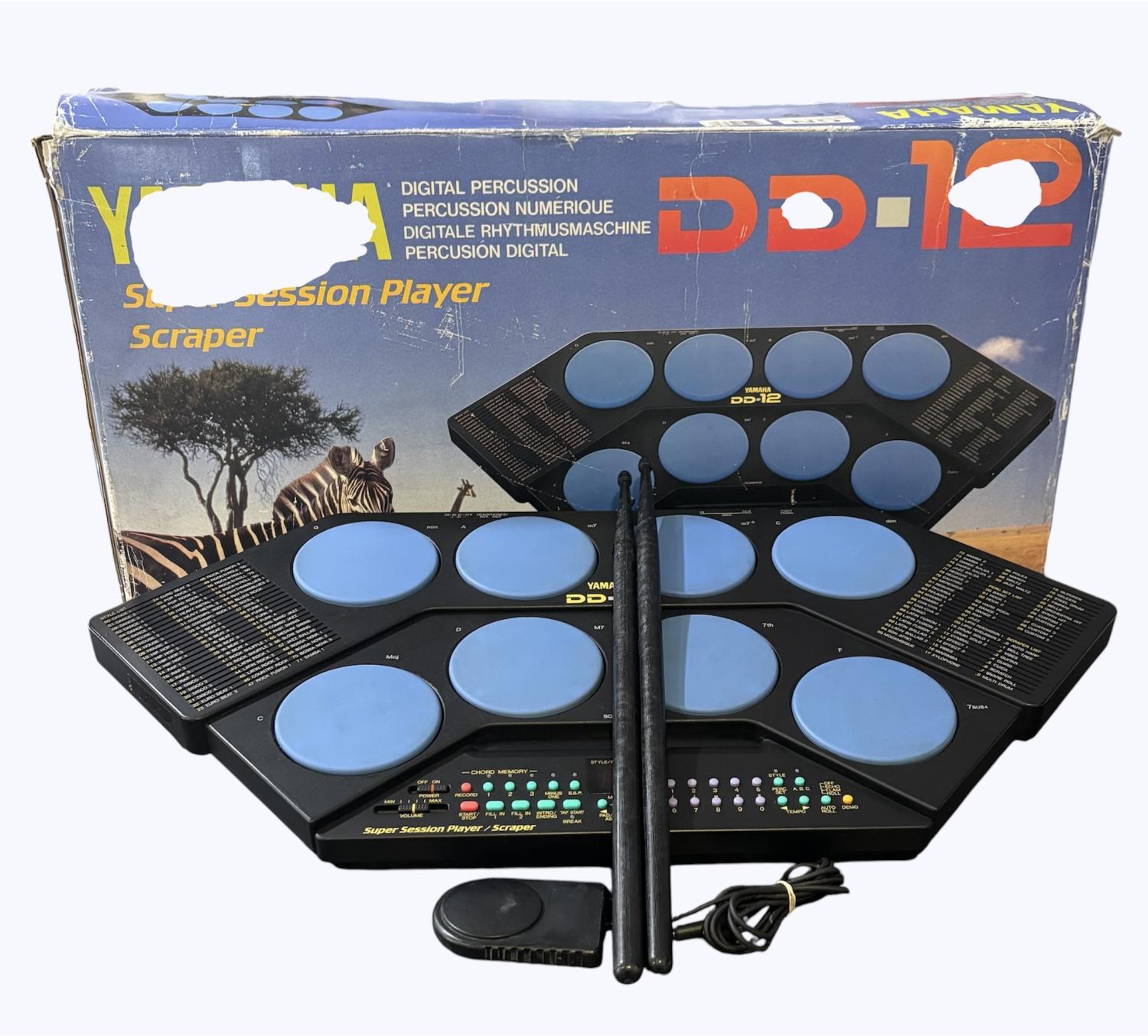 Includes Yamaha DD-12 Drum Machine , Power Cable , Sticks , and Kick Pedal